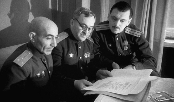 Из дневников адъютанта К.Е. Ворошилова известно, что на совещании, состоявшемся 18 июня 1943 года, маршал устроил грандиозный разнос собравшимся в зале поэтам и композиторам.