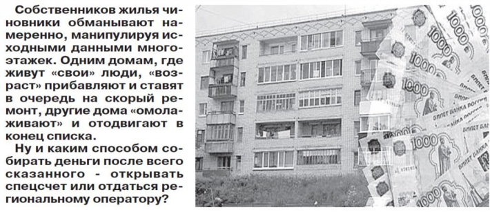 Ну и каким способом собирать деньги после всего сказанного - открывать спецсчет или отдаться региональному оператору? Лично я склоняюсь к тому, что копить надо самим - так надежнее. Но тут уж как общее собрание решит.